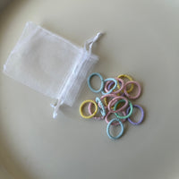 Dé set die elk meisje in haar elastiekjes voorraad moet hebben, met deze set zit je namelijk qua basics altijd goed. De elastiekjes zijn ongeveer zo groot als het topje van je duim en hebben perfecte meisjes kleuren. De elastiekjes zijn geschikt voor de eerste staartjes en dunne haren. De set bestaat uit 16 elastiekjes in 4 verschillende tinten