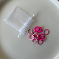 Dé set die elk meisje in haar elastiekjes voorraad moet hebben, met deze set zit je namelijk qua basics altijd goed. De elastiekjes zijn ongeveer zo groot als het topje van je duim en hebben perfecte meisjes kleuren. De elastiekjes zijn geschikt voor de eerste staartjes en dunne haren. De set bestaat uit 16 elastiekjes in 4 verschillende tinten