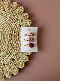 Setje va 3 roosjes op een klikklak clipje van 4 cm