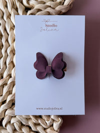 Het vlindertje zit bevestigd op een alligator clipje van 3 cm of een antislip haarspeldje.