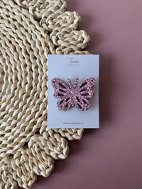 Met een formaat van ongeveer 6 cm breed en 4,5 cm hoog valt de vlinder mooi op zonder te overheersen. Verkrijgbaar in zachtroze, lavendel en beige, kleuren die perfect aansluiten bij de rest van de collectie en makkelijk te combineren zijn.